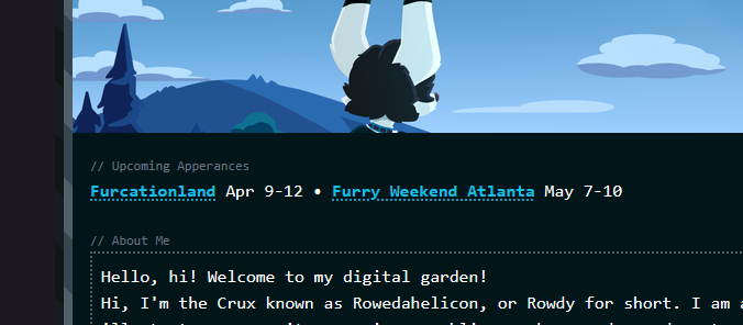 Just a reminder, I can be found at the following places~! https://rowdythecrux.dev
